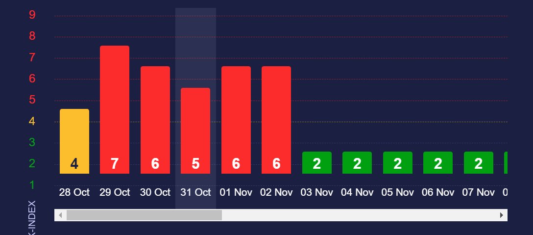 Rytoj, lapkričio 1-ąją, magnetinio lauko aktyvumas sieks šešis balus, lygiai toks pats aktyvumas turėtų išsilaikyti ir lapkričio 2-ąją.