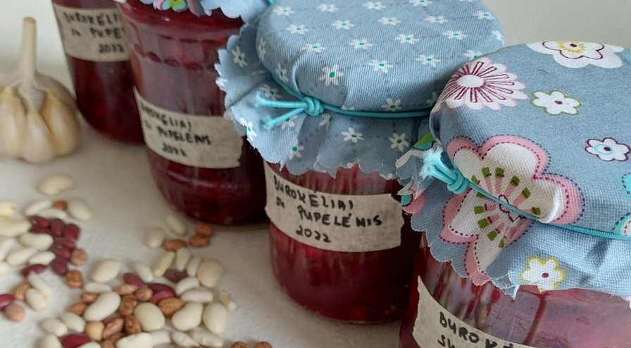 Iš normos išėjo 3–0,7 l ir 5–0,5 l stiklainiai: 3 kg virtų burokėlių; 0,5 kg morkų; 0,5 kg paprikų; 300 ml aliejaus; 4–6 skiltelės česnako; 1 l virtų pupelių; 100 g druskos; 300 g cukraus; 150 ml acto; 0,5 l pomidorų padažo.