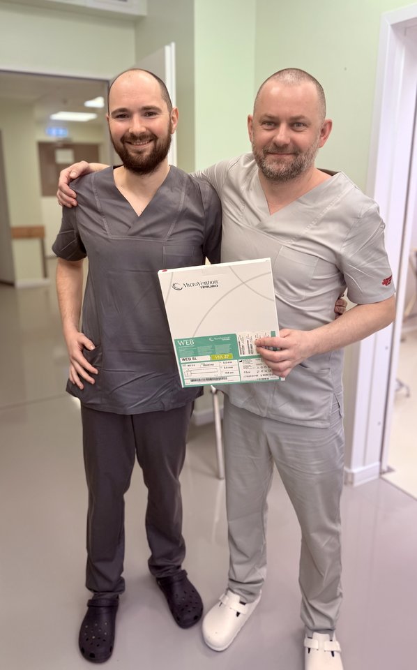 „Mes įvertiname vaizdinę medžiagą ir sprendžiame, ar aneurizma tinkama embolizacijai. Jei taip, tuomet atliekama procedūra per nedidelį kirkšnies dūrį – pasiekiama aneurizma ir perdengiama itin tankiu stentu.