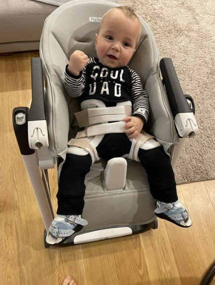 Berniukas dėl pėdų paraplegijos vaikšto su ortezais ir, kaip sako mama, tikriausiai su jais vaikščios visą gyvenimą. Jie padeda žengti taisyklingai – dėti pėdą nuo kulniuko, taip, kaip vaikštome visi.
