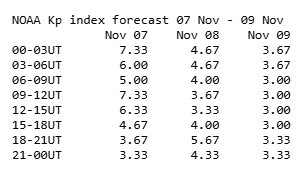 Jungtinių Amerikos Valstijų Nacionalinės vandenynų ir atmosferos tyrimų administracijos (NOAA) trijų artimiausių dienų prognozėje taip pat matyti – šiandien smogs galinga magnetinė audra.