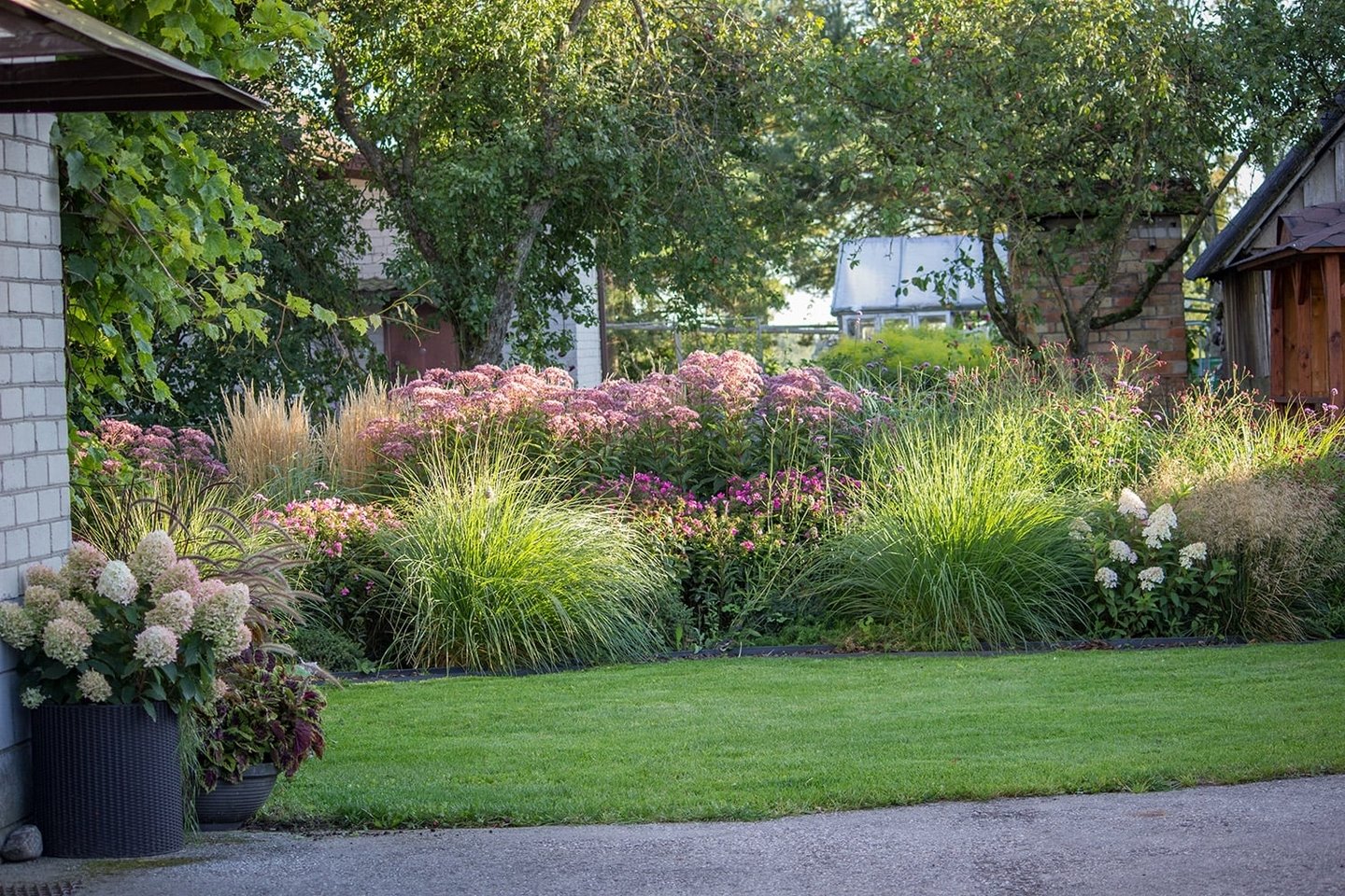Dabar čia karaliauja smilginiai augalai – miskantai, lendrūnai, soruolės, sorai – bei šalavijai. Tokie pasirinkimai suteikia kiemui modernumo ir užtikrina, kad žydėjimas tęstųsi visą sezoną.