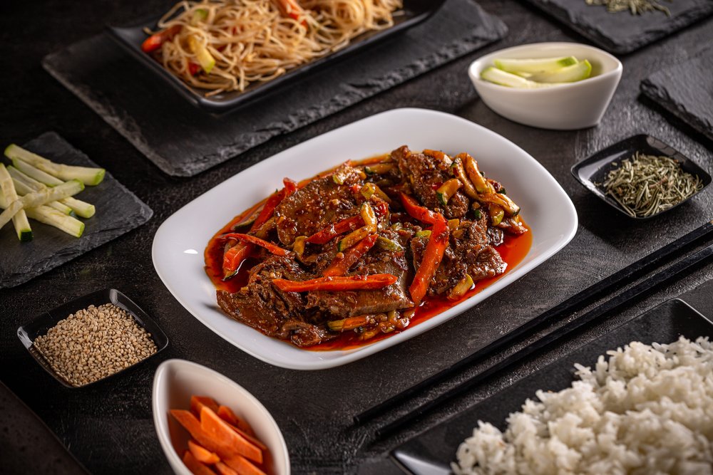 Mėgstantiems egzotiškiau: azijietiškas kiaulienos liežuvis su daržovėmis ir sojų padažu