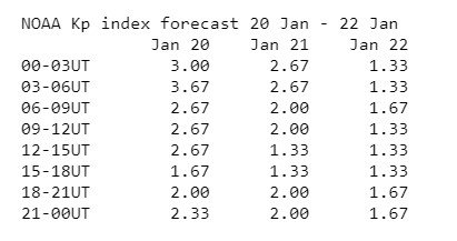 Šiandien, sausio 20 dieną, magnetinio lauko aktyvumas savo piką (3,67 balus) jau pasiekė ryto valandomis, visą dieną aktyvumas laikysis apie 2,67 balus su nežymiais svyravimais.