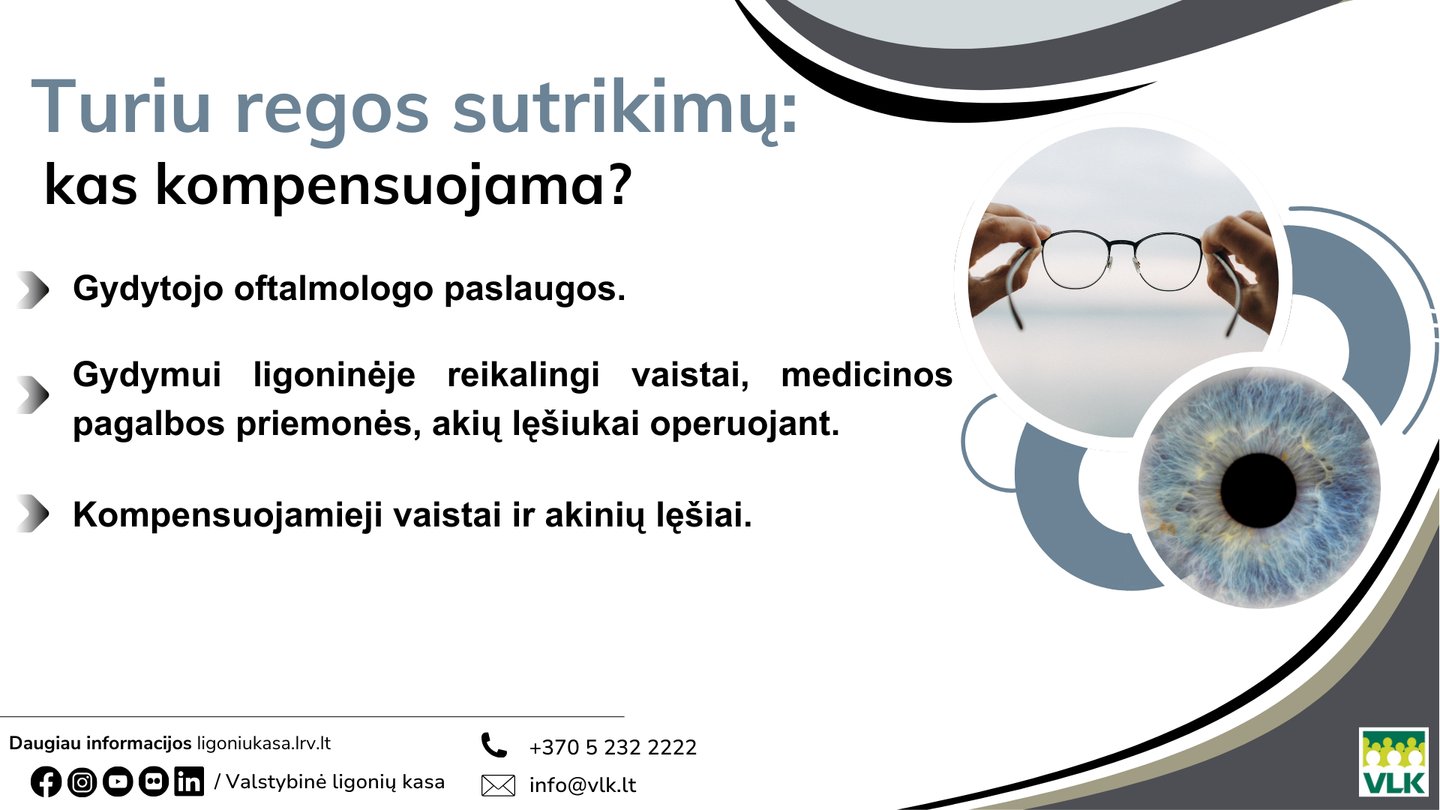 Suprastėjus vaiko regai, pirmiausia reikia kreiptis į šeimos gydytoją. Prireikus jis išrašys siuntimą akių gydytojo konsultacijai gauti. Šis specialistas, nustatęs regos sutrikimą, gali skirti kompensuojamuosius akinių lęšius ir išduoti siuntimą, su kuriuo galima kreiptis į vieną iš optikų, sudariusių sutartį su VLK. Optikų sąrašą galima rasti čia.