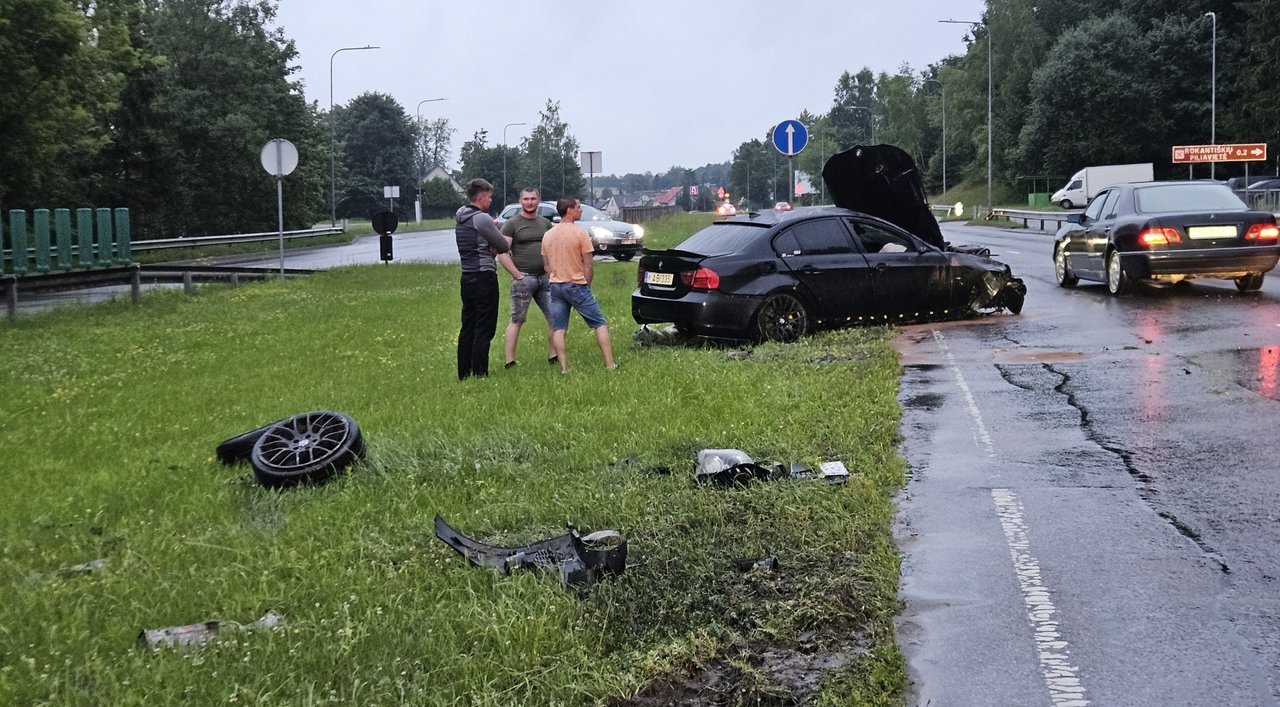 Pirminiais duomenimis, automobiliu važiavo vienas žmogus – vairuotojas. Jis išvežtas į ligoninę.