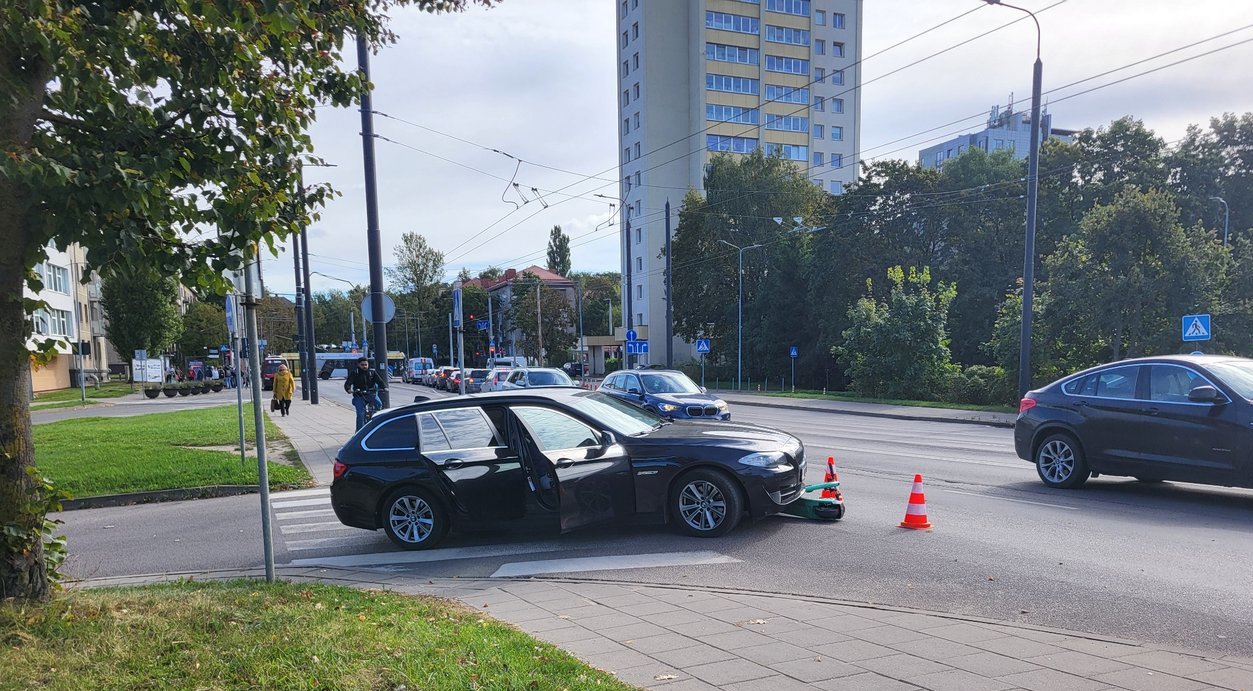 Paspirtukas atsidūrė po BMW, nukentėjusioji patyrė nesunkius sužalojimus.