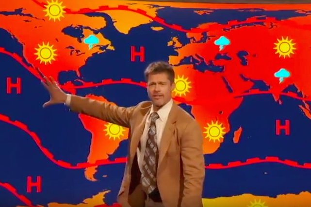 „Ačiū Jimai. Taigi, temperatūra kils šioje srityje bei šioje srityje", sakė jis rodydamas į skirtingas pasaulio žemėlapio puses, kurios buvo nuspalvintos raudona bei oranžine spalvomis bei liepsnojančios saulės simboliais.