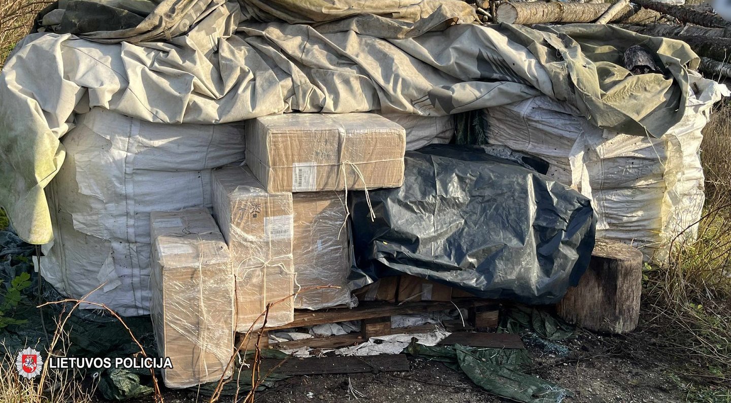 Apie 11.35 val. teritorijoje rasta 7 500 pakelių cigarečių – 6 000 „NZ“ su baltarusiškomis banderolėmis ir 1 500 „Winston Blue“ be banderolių. Tai didelė akcizais apmokestinamų, tačiau Lietuvos Vyriausybės nustatyta tvarka nepaženklintų cigarečių siunta, kurios vertė viršija 35 tūkst. eurų, praneša policija.