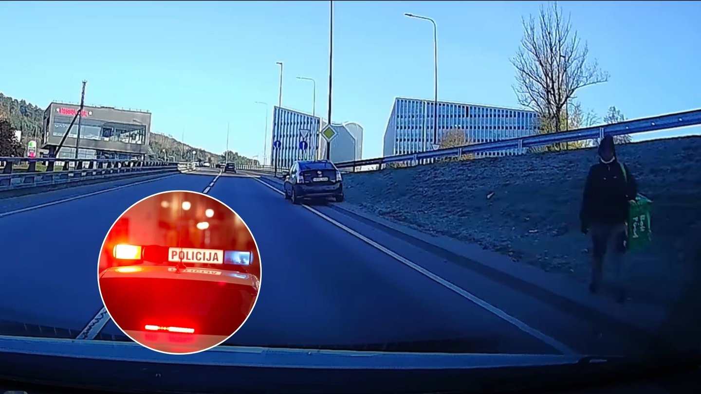 Automobilio vaizdo registratoriumi nufilmuota, kaip „Bolt“ kurjeris, važiuojant viaduku nuo geležinio vilko gatvės ties šeškinės kalnu, viaduko pakraštyje paliko savo automobilį.