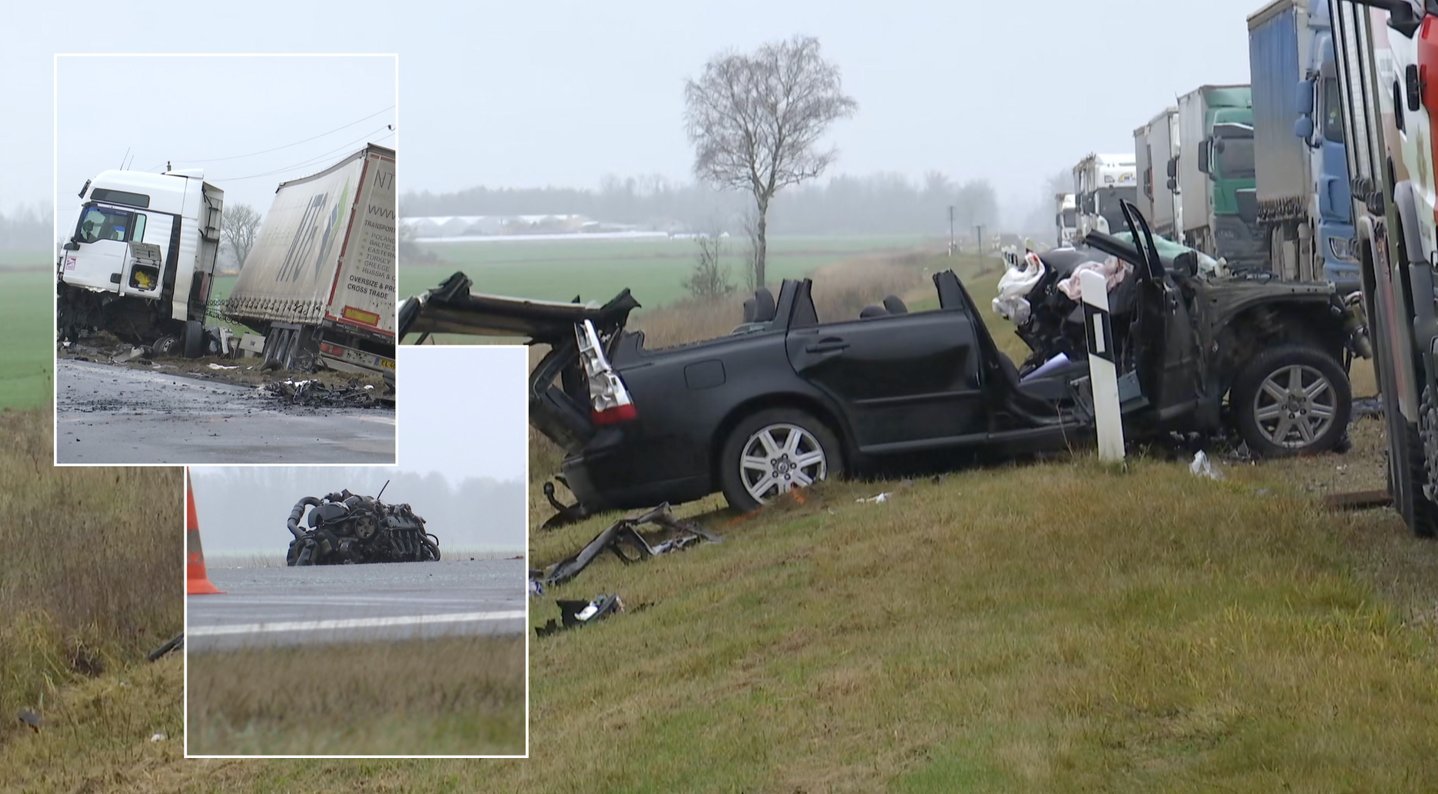 Lapkričio 13 d. TV3 Žinios. Paviešino „Volvo“ ir vilkiko avarijos vaizdus: automobilio vairuotoją vadavo pusvalandį