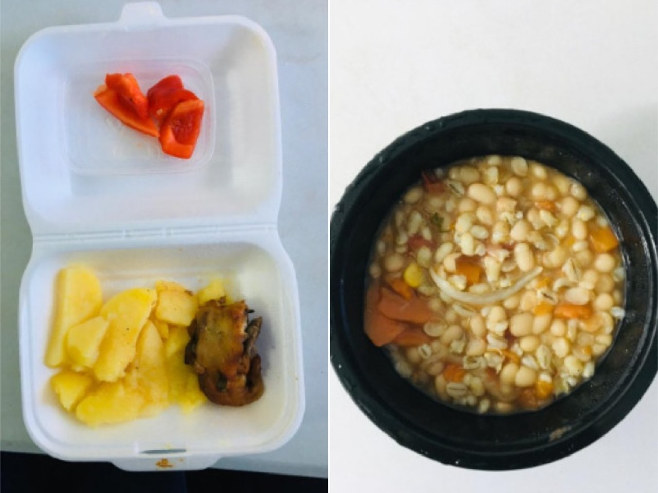 Gegužės 29 dieną pusryčiams migrantas gavo pusę pigiausio batono, mažą indelį jogurto, mažytį džemo pakelį, vieną arbatos pakelį ir kavos 3 in 1. Pietums – daržovės su ryžiais, bet labai mažytė porcija. Vakarienei – vėl, regis, ryžių košė.
