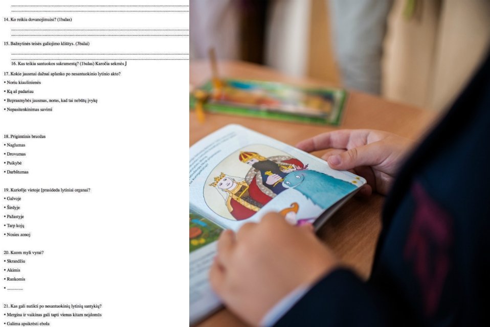 „Ir vėl tikybos pamokos, aš pradedu nebe suprasti, jie grybą pjauna su savo tokiais lytiškumo ugdymais. Jau testas – juokinga, bet dar ir rašomi balai.