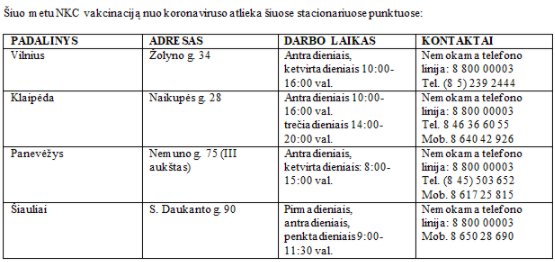 Viena naujausių tokių vietų duris atvers jau sausį laikinojoje sostinėje Kaune, Vytauto pr. 13, kur sveikatos priežiūros profesionalai ne tik skiepys, bet ir atsakys į rūpimus klausimus. Apie tikslią atidarymo datą NKC informuos artimiausiu metu.