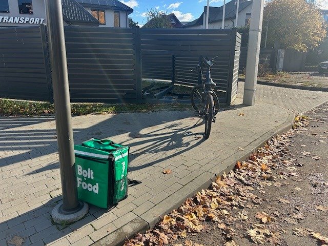 Vaizdo kameros užfiksavo, kaip dviračiu maistą pristatantis kurjeris rėžiasi į bendrovės „Etransport“ teritoriją juosiančią tvorą.