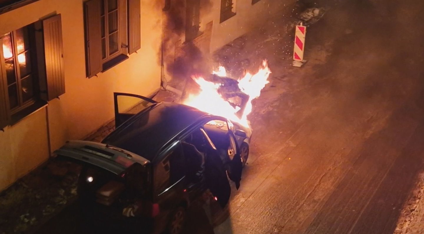 Užsidegė automobilis „Seat Alhambra“. Degantį vienatūrį nufilmavo liudininkas. Kai jis pastebėjo gaisrą, automobilis jau degė atvira liepsna, artintis prie mašinos jau buvo pavojinga.