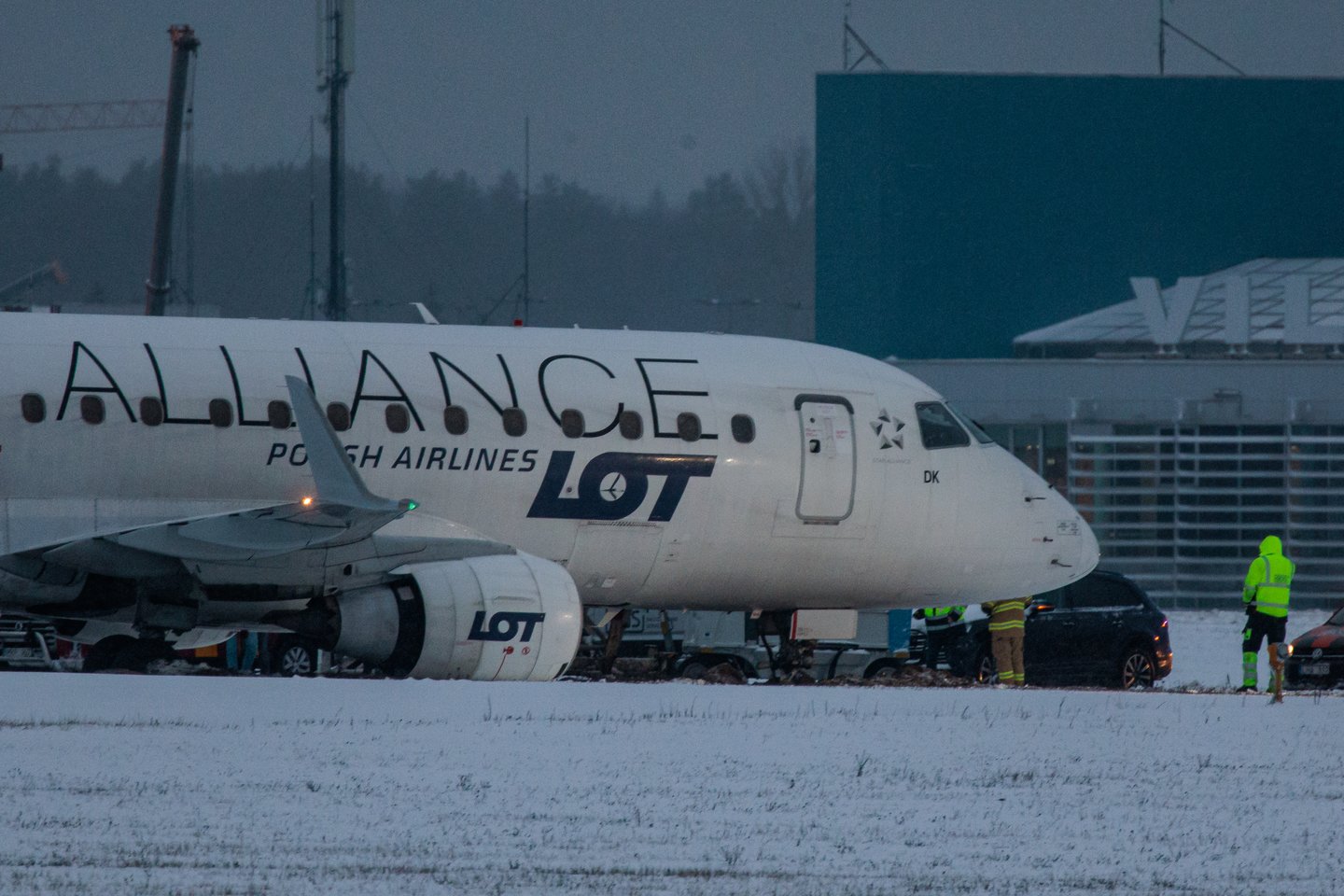 Tuo metu Lietuvos oro uostų generalinis direktorius S. Bartkus pridėjo, kad LOT lėktuvas riedėdamas nuo kilimo tako ir darydamas posūkį link riedėjimo tako, nuslydo nuo šio tako ir nuvažiavo ant gruntinės dalies.