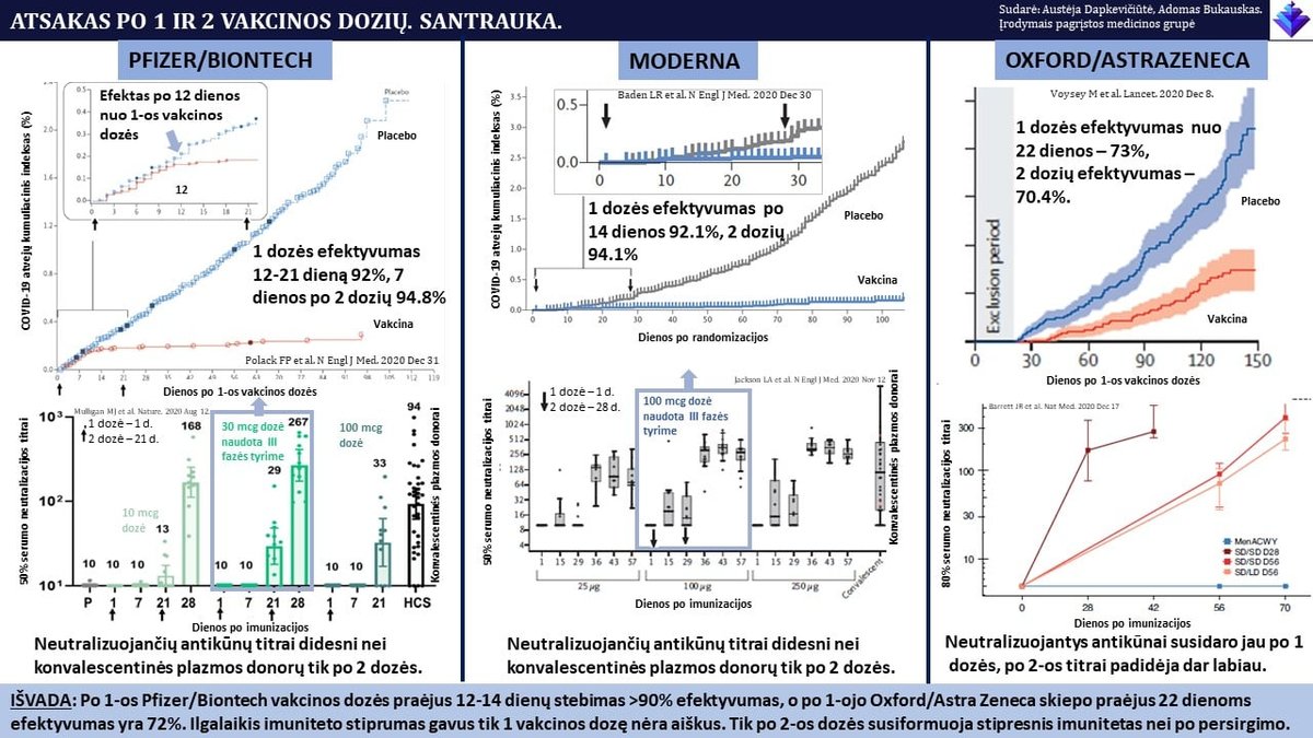 „Tačiau pagal I–II fazės klinikinius tyrimus panašiausia, jog po 2-os vakcinos dozės susidarantis imunitetas yra stipresnis. Todėl, nors pirmoji vakcinos dozė atrodo pakankamai efektyvi suformuojant trumpalaikį imunitetą, apie ilgalaikį imuninį atsaką po 1-os vakcinos dozės spręsti negalime“, – dėstoma grupės socialinio tinklo paskyroje.