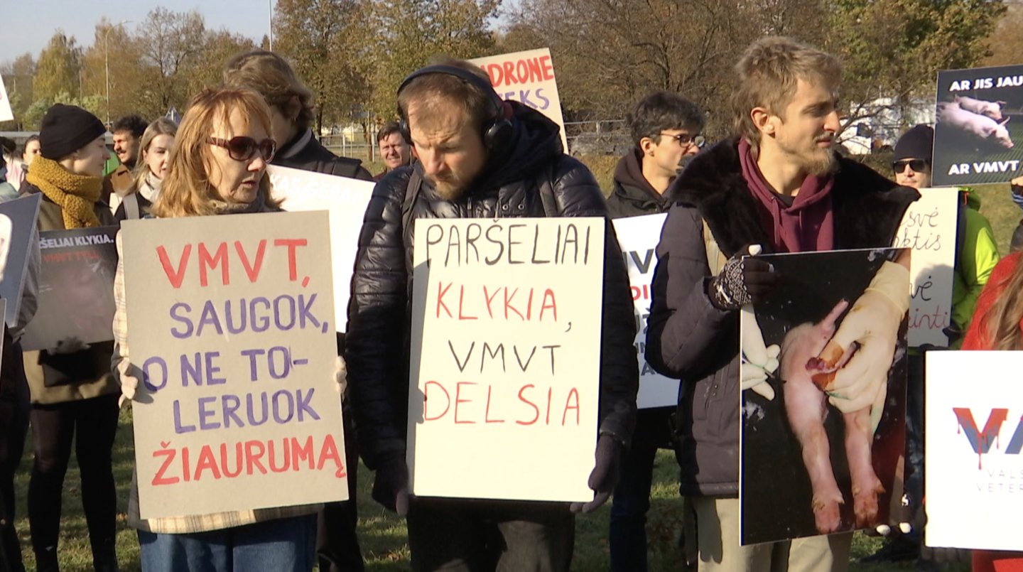 Šį kartą tai jau trečiasis protestas, kuriame apie 100 protestuotojų stovi, klausosi širdies dūžių garsų ir laiko plakatus prie Valstybinės maisto ir veterinarijos tarnybos. Įvykį komentuoja protesto dalyviai: