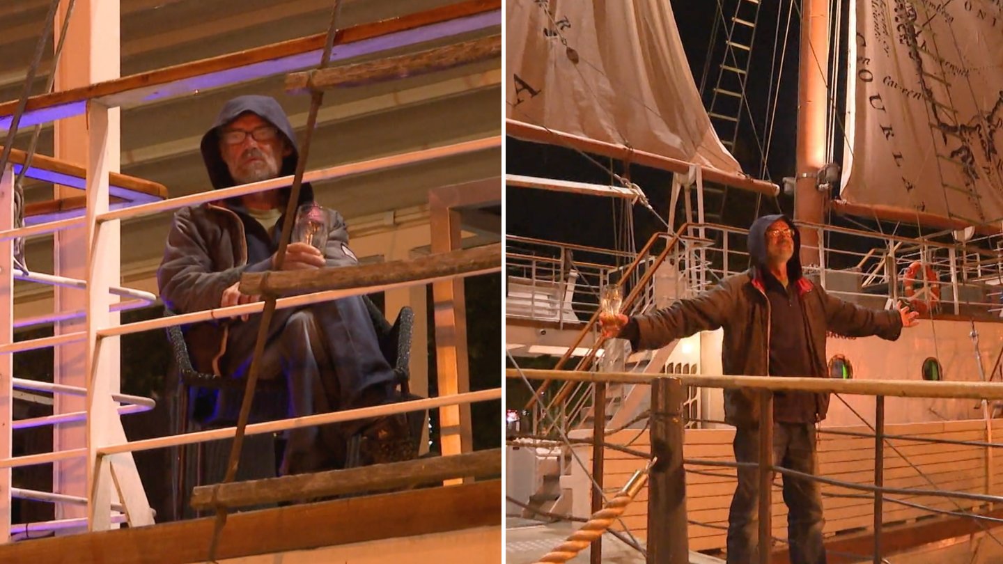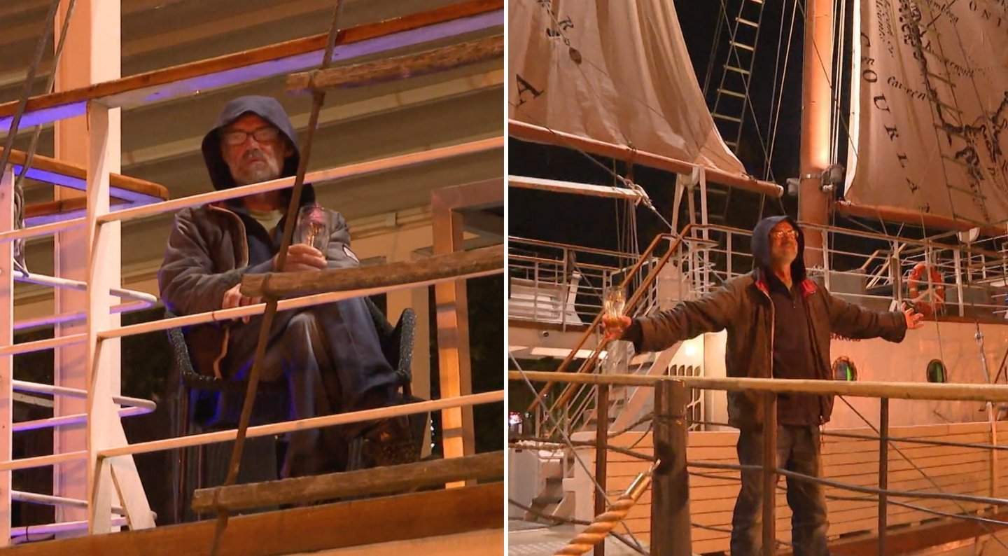 Tuo tarpu vyriškis laive gurkšnojo alų ir į suirutę ant kranto visai nereagavo. Pritraukus vaizdą buvo aiškiai matyti keleivio fizionomija – tai neseniai policijos kalbintas vyriškis. Nesiseka vaikščioti gatvėmis – tai nusprendė plaukioti. Paskutinis Klaipėdos piratas jautėsi puikiai ir, kol alus nesibaigs, į kalbas su apsaugininkais, rodos, nesileis.
