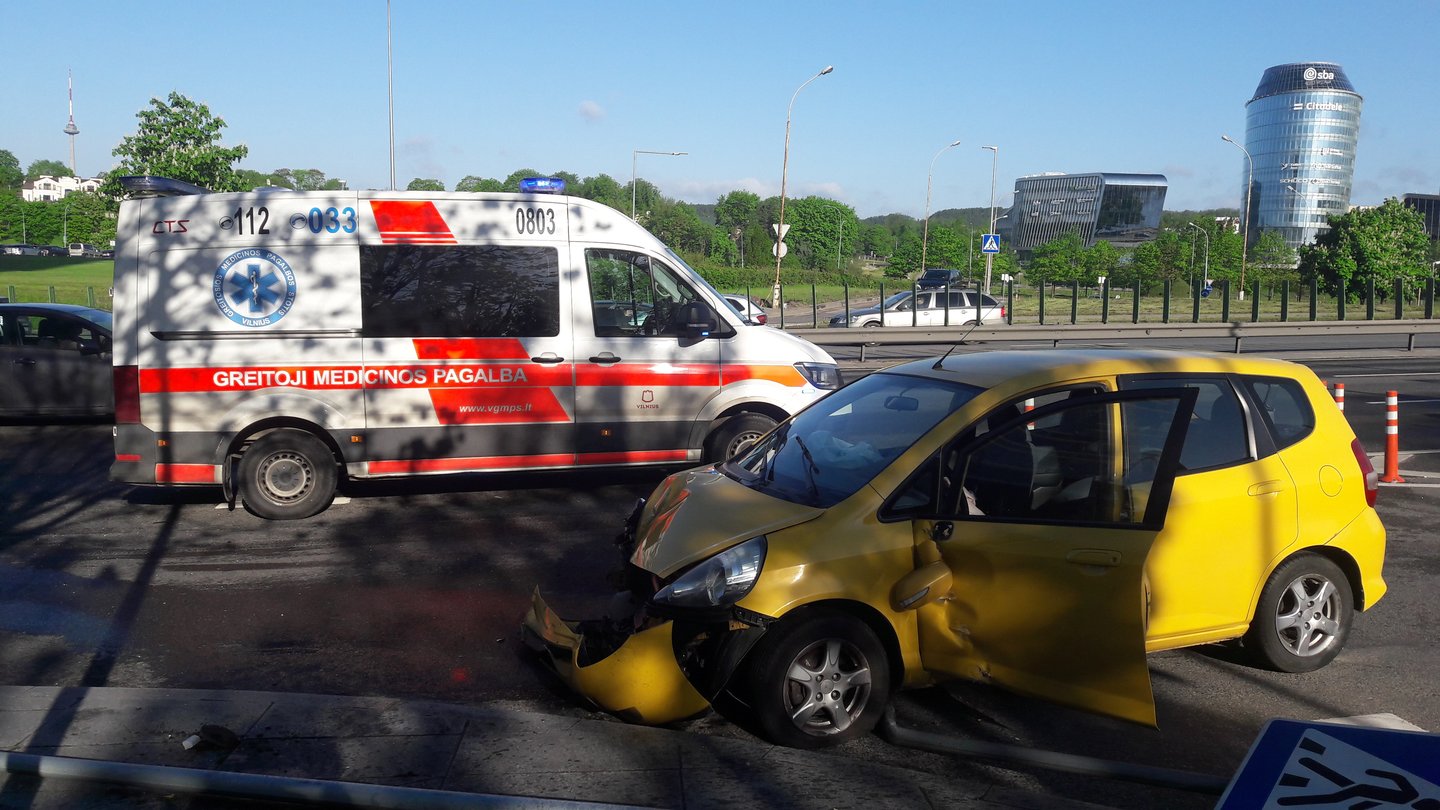 Avarija įvyko Geležinio Vilko gatvėje. Automobilį „Honda“ vairavusi Moterį atsitrenkė į kelio ženklą.