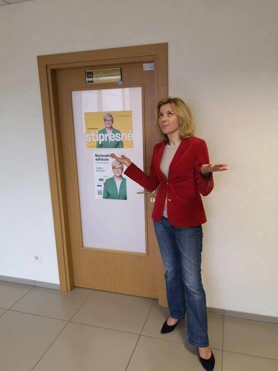 „Absurdo lygis. Apskųstos TS-LKD pirmininko Gabrieliaus Landsbergio durys. Nes... Gabrielius pakabino Nacionalinės apklausos plakatą, kaip Lietuva galėtų būti stipresnė. VRK pradėjo tyrimą“, – savo „Facebook“ paskyroje rašė V. Šmaižytė.