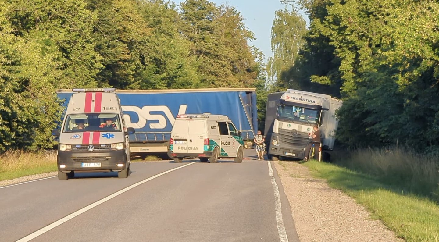 Į griovį nuvažiavęs vilkikas užtvėrė ir dalį kelio, lengvieji automobiliai pro likusį tarpą dar galėjo pravažiuoti, o štai kitas vilkikas, pabandęs aplenkti avarijos vietą, įstrigo – tad eismą čia teko visiškai uždaryti.