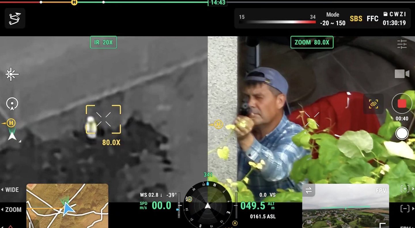 Įraše nurodoma, jog vyras į droną šaudė specialiai.