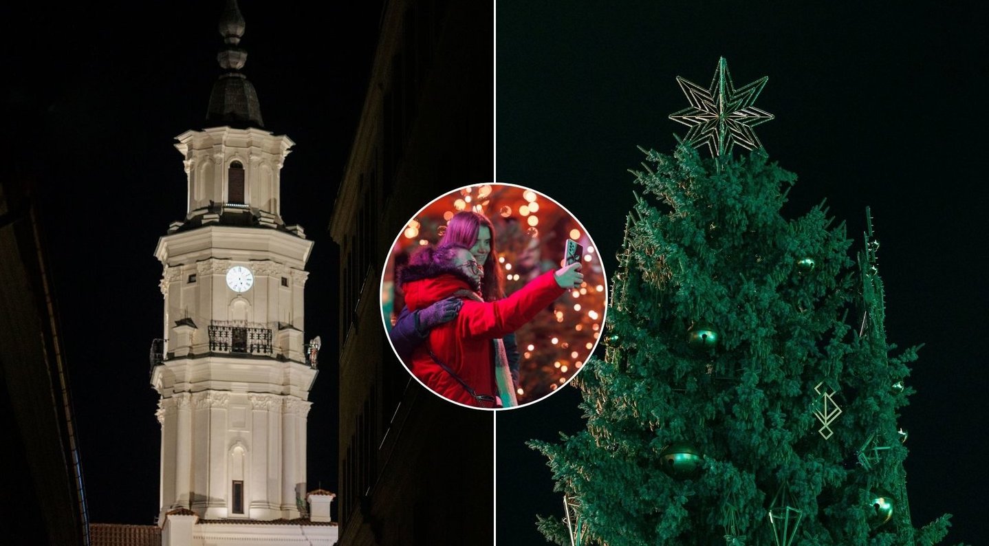 Šeštadienio vakarą žmonės plūsta į Rotušės aikštę stebėti pirmosios šalies žaliaskarės įžiebimo.