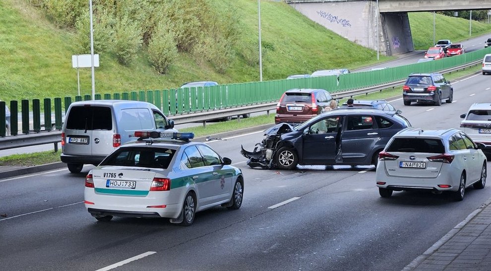 Pirminiais duomenimis, susidūrė du automobiliai. Susidūrusios mašinos užtvėrė eismą.