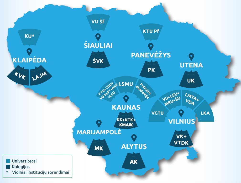 Kaune plačios aprėpties universitetas būtų kuriamas sujungiant Kauno technologijos universitetą, Vytauto Didžiojo universitetą, Aleksandro Stulginskio bei Lietuvos sporto universitetą. Techniniai universitetai turėtų veikti Vilniuje ir Klaipėdoje.