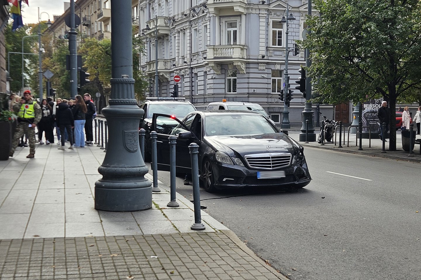 Pirminiais duomenimis, Karo policija važiavo degant raudonam šviesoforo signalui su įjungtais švyturėliais, „Mercedes“ vairuotojui degė žalia.