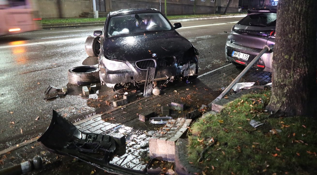 Neblaivus vairuotojas taip pat kliudė kelio ženklą, šaligatvio bortelį bei betoninius stulpelius.