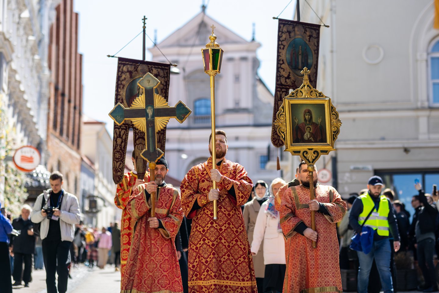 Procesija šeštadienį surengta po pamaldų Aušros Vartų gatvėje esančioje Šventosios Dvasios cerkvėje. Keli šimtai žmonių per sostinės senamiestį ėjo link Dievo Motinos Katedros Maironio gatvėje.