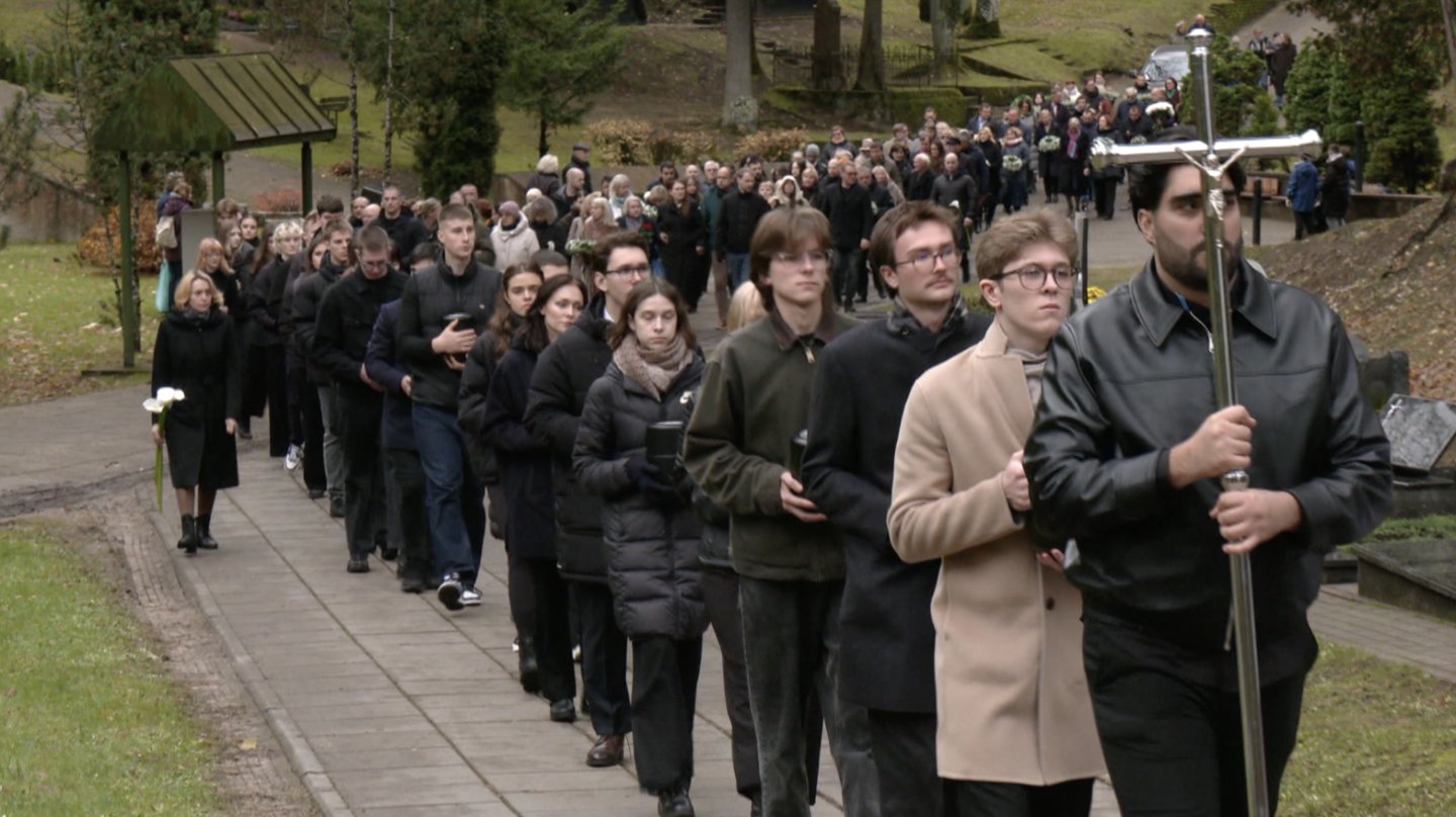 O jau atvykę svečiai išsidalina baltas gėles, sustojo eilėn ir virš šimto žmonių, kupini rimties, susikaupimo, vedami kunigo, žygiavo link paruoštos kapavietės.