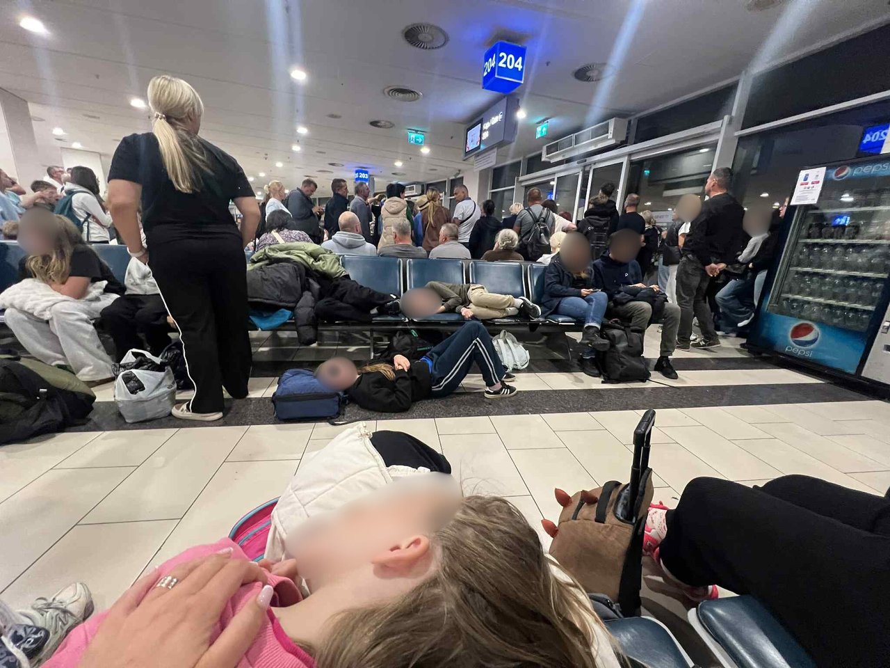„Jau daugiau nei 15 valandų sėdime oro uoste. Čia yra žmonių, o mūsų lėktuvas, talpinantis apie 400 keleivių, vis dar neišskrenda.