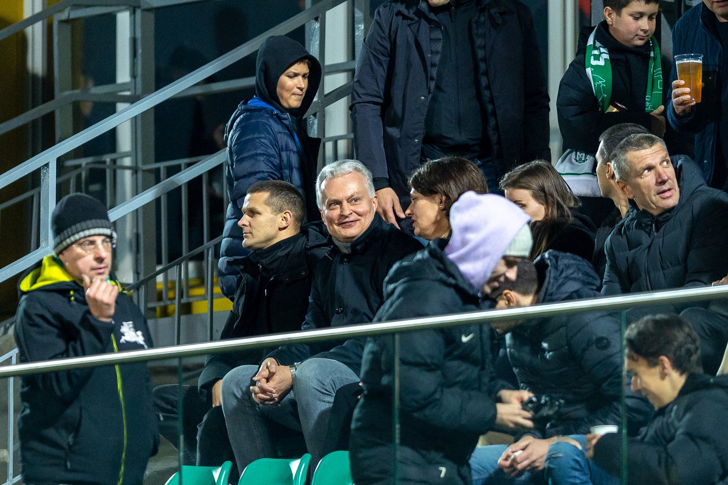 Rungtynes Lietuvos futbolo federacijos (LFF) stadione stebėjo Lietuvos Respublikos prezidentas Gitanas Nausėda ir jo žmona Diana.