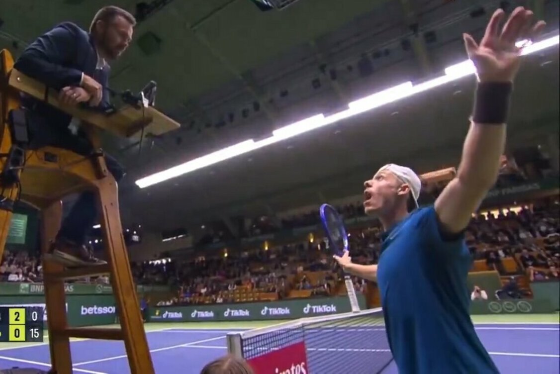 D. Šapovalovas įtikinamai laimėjo pirmąjį setą, bet antrojo pradžioje pralaimėjo savo padavimų seriją, atsiliko 0:2 ir pradėjo konfliktuoti su vienu iš sirgalių. Po apsižodžiavimo D. Šapovalovas pasiskundė bokštelio teisėjui, kad fanas jam rodė vidurinį pirštą.