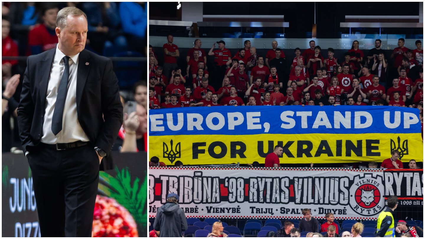 Šiose rungtynėse prie palaikymo Ukrainai prisijungė ir „Ryto“ ekipos sirgaliai. Arenos vietoje, kur sėdi „B tribūna“ iškilo plakatas su Ukrainos vėliava ir užrašu „Europa, atsistok dėl Ukrainos!“.