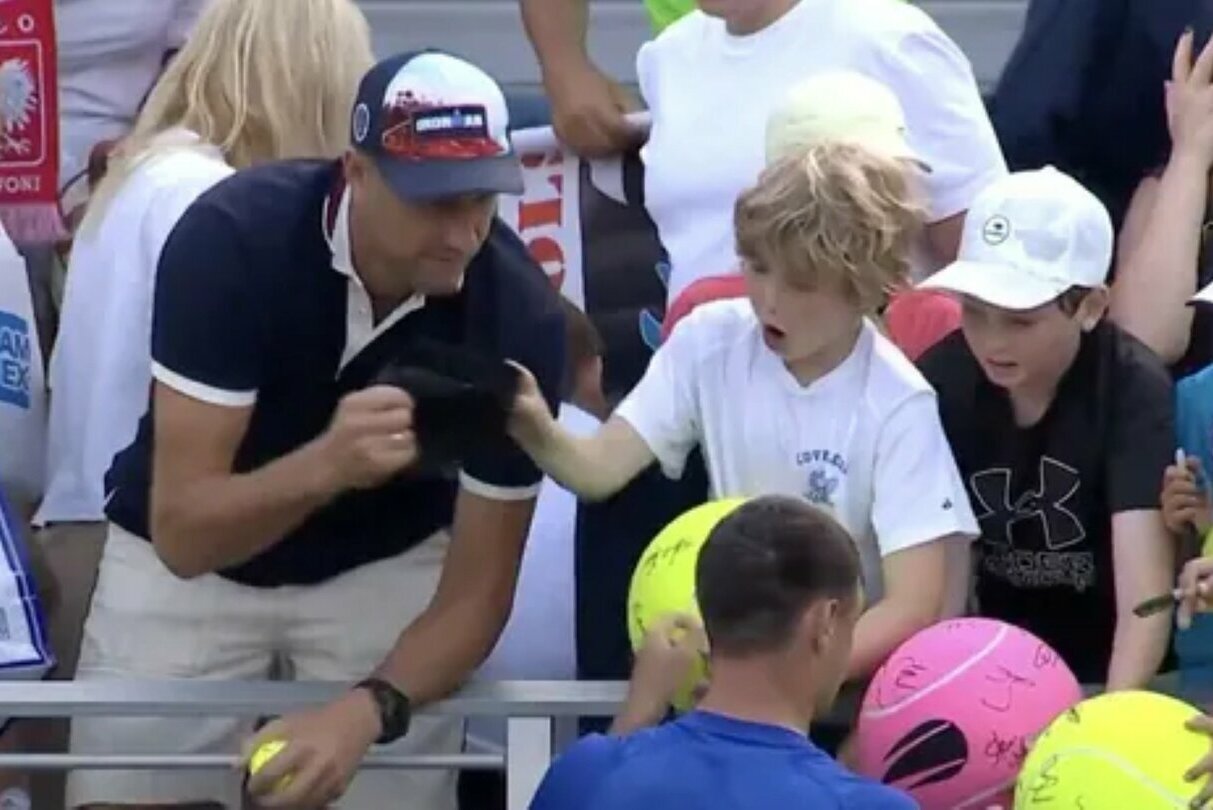 BREAKING🎾🧢: Polish tennis player, Kamil Majchrzak meets the boy whose cap was stolen at the US Open, and gave him another one along with an autograph.