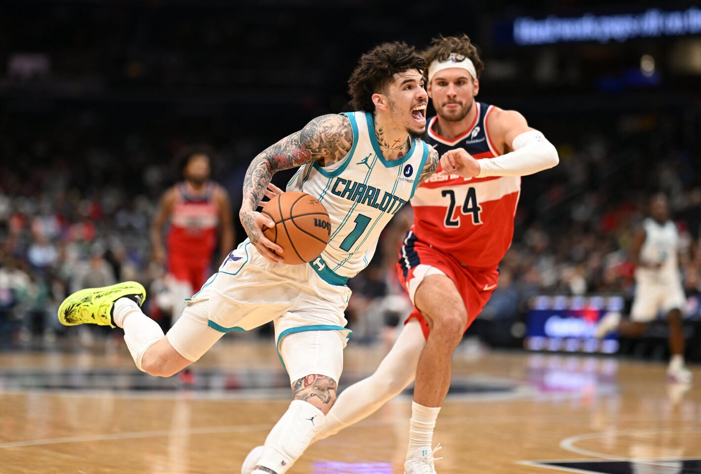 „Hornets“: LaMelo Ballas 38 (13 atk. kam., 13 rez. perd., 5/12 tritaškių), Milesas Bridgesas 22 (1/7 tritaškių), Collinas Sextonas (7/9 dvitaškių) ir Konas Knueppelas (5/9 tritaškių, 6 atk. kam.) po 20, Sionas Jamesas 13 (3/4 tritaškių), Moussa Diabate 12 (10 atk. kam.).