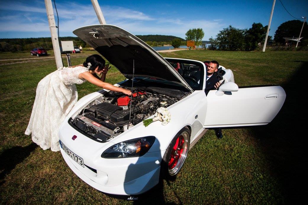 Mergina su šypsena veide teigia, kad jai yra vienas malonumas kartu su savo vyru dalintis to pačio sportinio automobilio vairą.