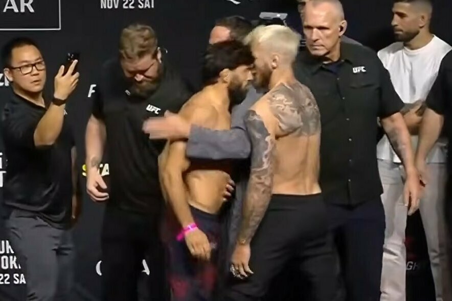 Penktadienį abu kovotojai sėkmingai numetė svorį, o vakare pasirodė ceremoniniuose svėrimuose. Ten jie paskutinį kartą prieš kovą turėjo stoti akis į akį.