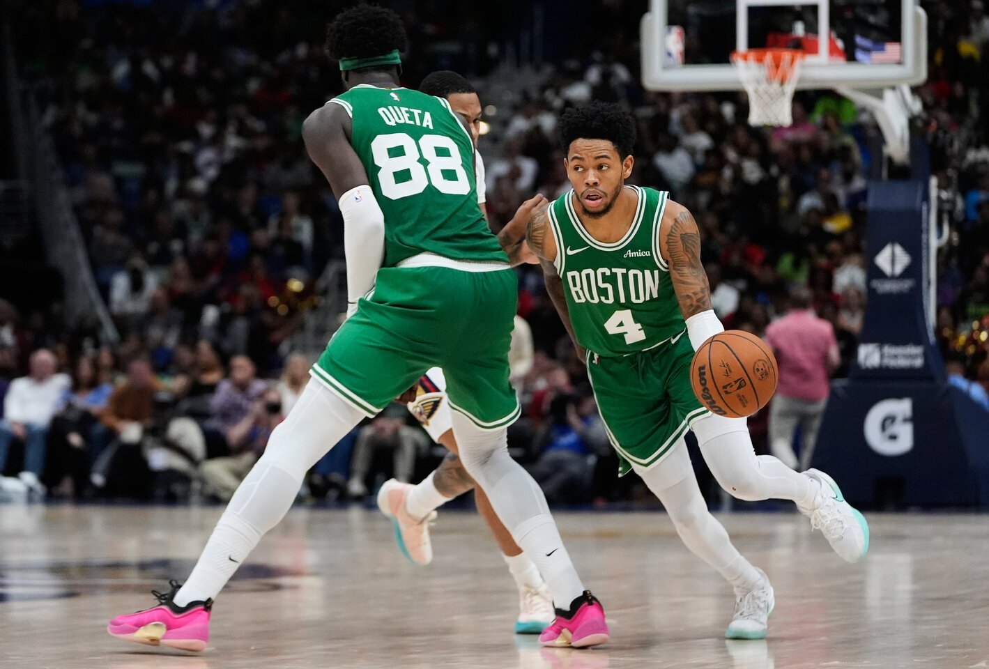 „Celtics“: Anfernee Simonsas 25 (6 atk. kam., 6/13 tritaškių), Paytonas Pritchardas 18 (8 rez. perd., 2/7 tritaškių), Luka Garza 16 (6 atk. kam., 3/4 tritaškių), Jaylenas Brownas (7 atk. kam., 4 rez. perd.) ir Joshas Minottas (9 atk. kam.) po 15, Derrickas White’as 11 (7 rez. perd., 1/9 tritaškių).