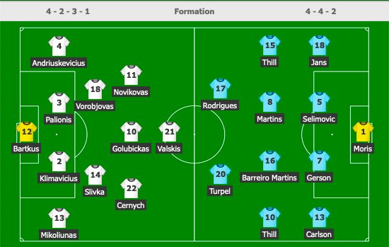 Pašalinti: 42 min. S. Mikoliūnas, 90 min. M. Vorobjovas.