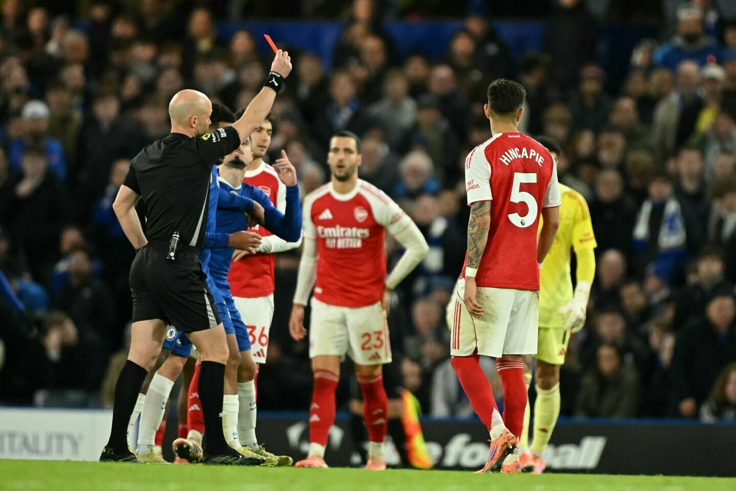 Moisesas Caicedo pirmojo kėlinio pabaigoje už grubią pražangą prieš varžovą iš pradžių buvo nubaustas geltona kortele. Visgi teisėjas po VAR peržiūros sugriežtino savo sprendimą ir skyrė raudoną kortelę.