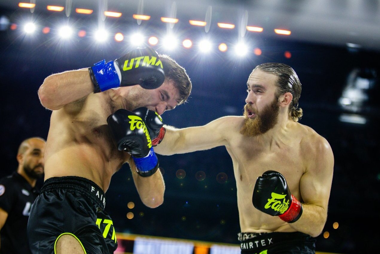 Dovydas Levickis (63,4 kg, 6-1 UTMA) – Artūras Brižinskas (63,5 kg, 6-3 UTMA) | -63,5 kg, kikboksas su MMA pirštinėmis, 5 raundai – dėl UTMA čempiono titulo | D. Levickio pergalė ketvirtajame raunde po keturių nokdaunų