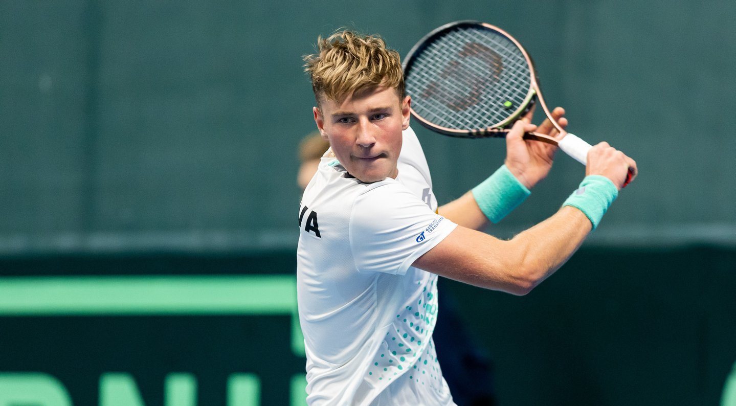 Lietuvis mačą pradėjo nuo dviejų laimėtų geimų (2:0). Vėliau E. Butvilas persvarą prarado (2:2), bet devintajame geime atitrūko 40:0, trečiu mėginimu realizavo „break pointą“ ir susikrovė pergalingą pranašumą.