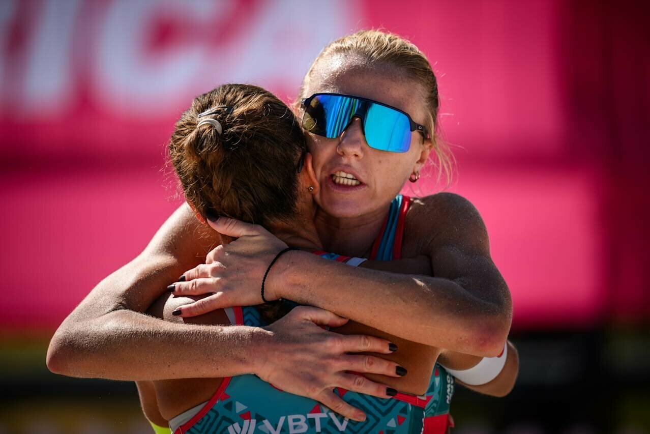 Pirmą kartą tokio lygio turnyre žaidžiančios Ieva Vasiliauskaitė ir Erika Kliokmanaitė C grupės mače dėl trečios vietos 2-1 (21:16, 14:21, 15:11) nugalėjo čekes Kylie Neuschaeferovą ir Martina Mixnerovą bei taip pat žengė į atkrintamąsias varžybas.