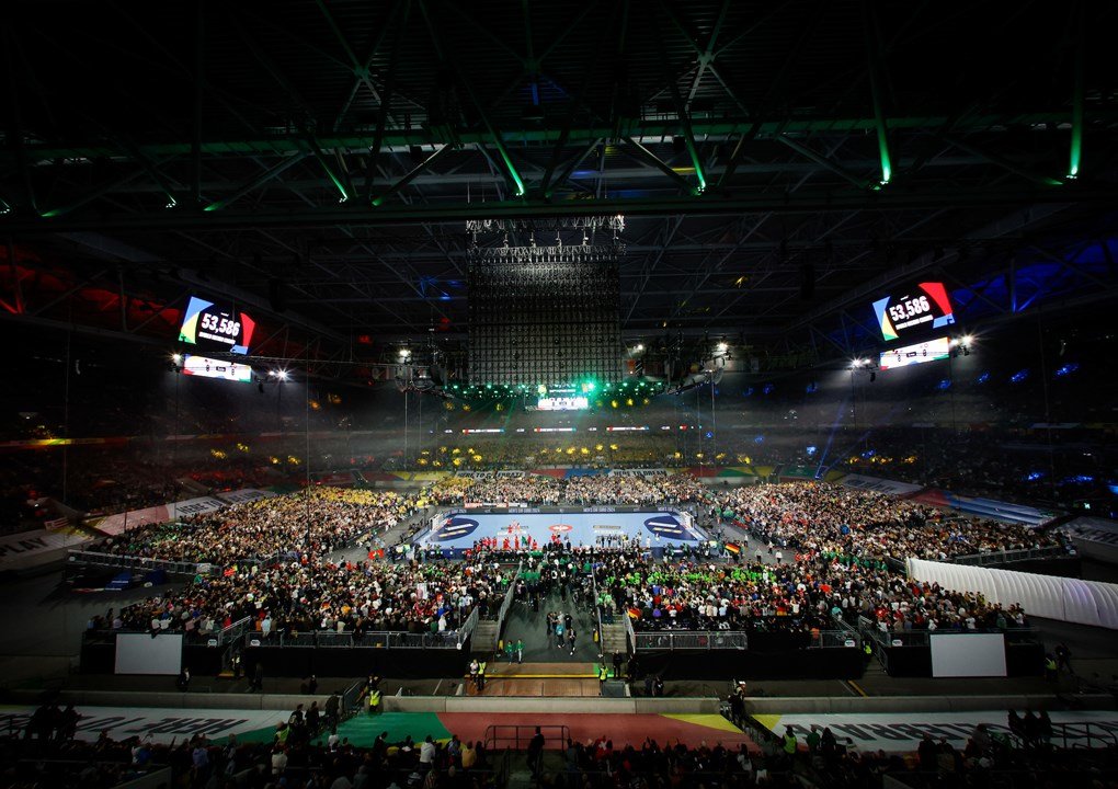 Diuseldorfo „Merkur Spiel-Arena“ futbolo stadione vyko tik dvejos atidarymo rungtynės. Vėliau čempionato kovos persikels į arenas kituose Vokietijos miestuose – Berlyne, Manheime, Miunchene, Hamburge ir Kelne.